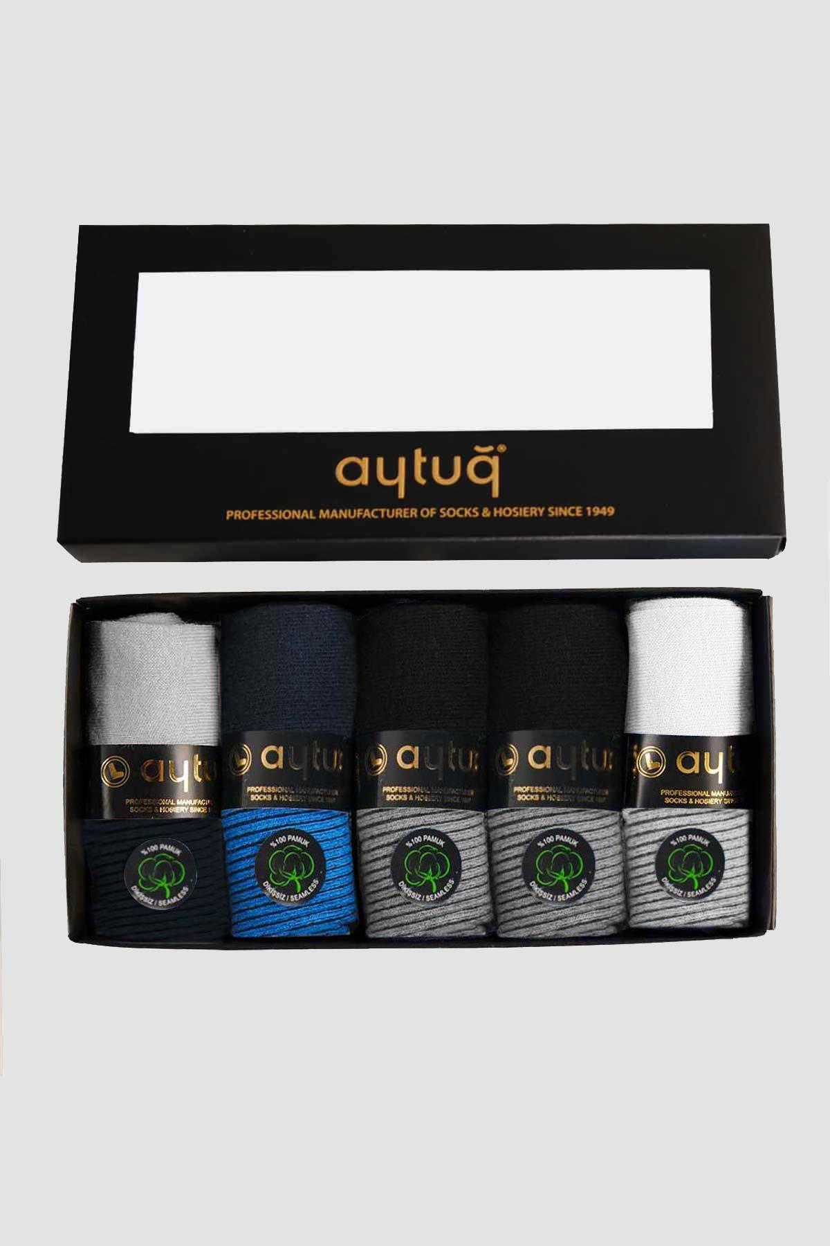 -Kutu içerisinde görselde bulunan 5 çift çorap mevcuttur.