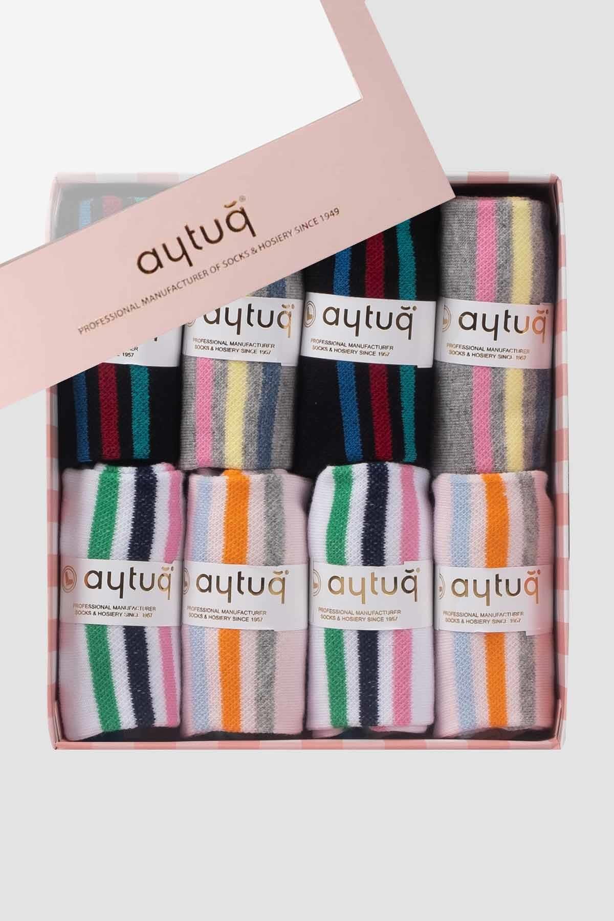 -Kutu içerisinde görselde bulunan 8 çift çorap mevcuttur.