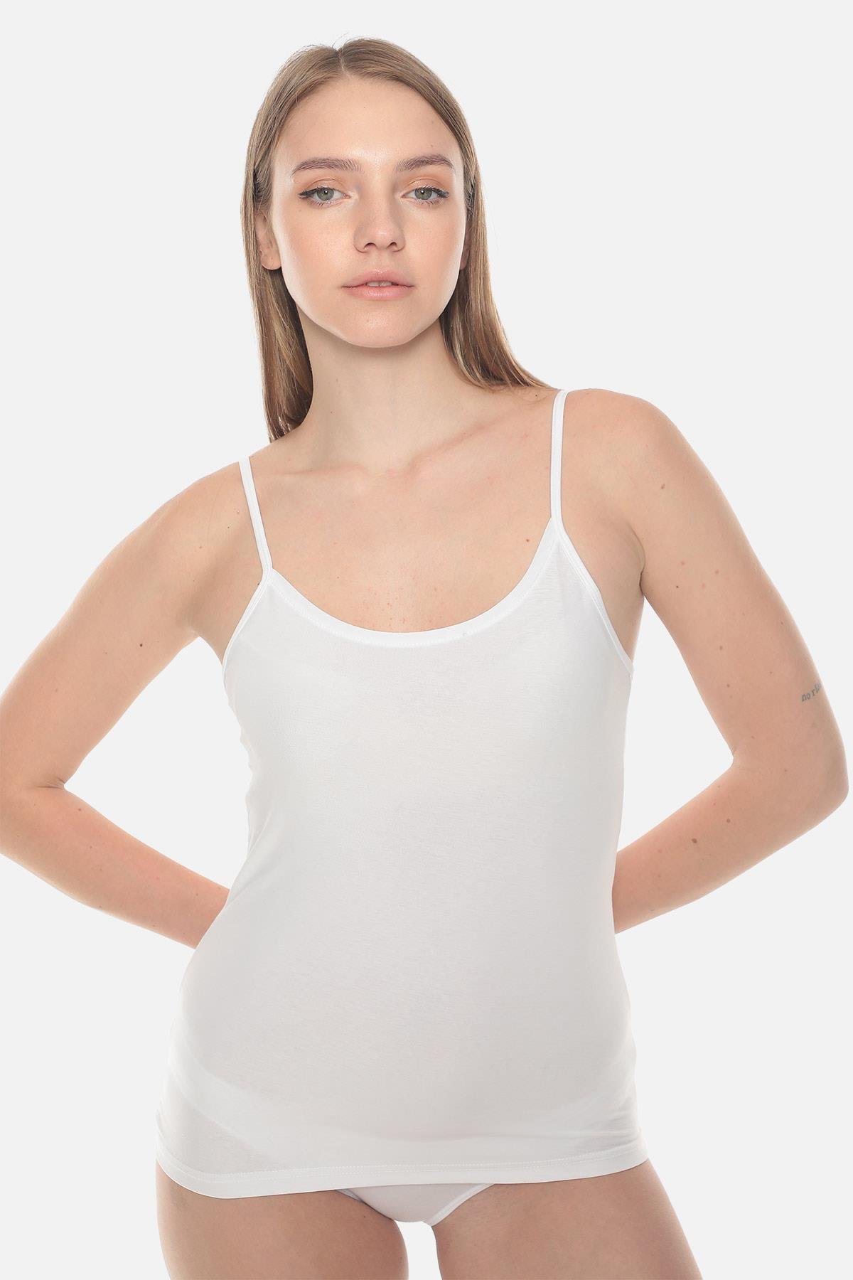 Aytuğ Kadın Pamuklu İnce Askılı Beyaz Atlet - A-IPA-B